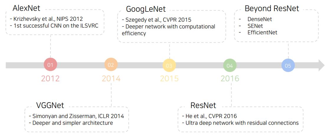 - CNN 모델 구조를 이용한 이미지 Classification의 발전 연대기
